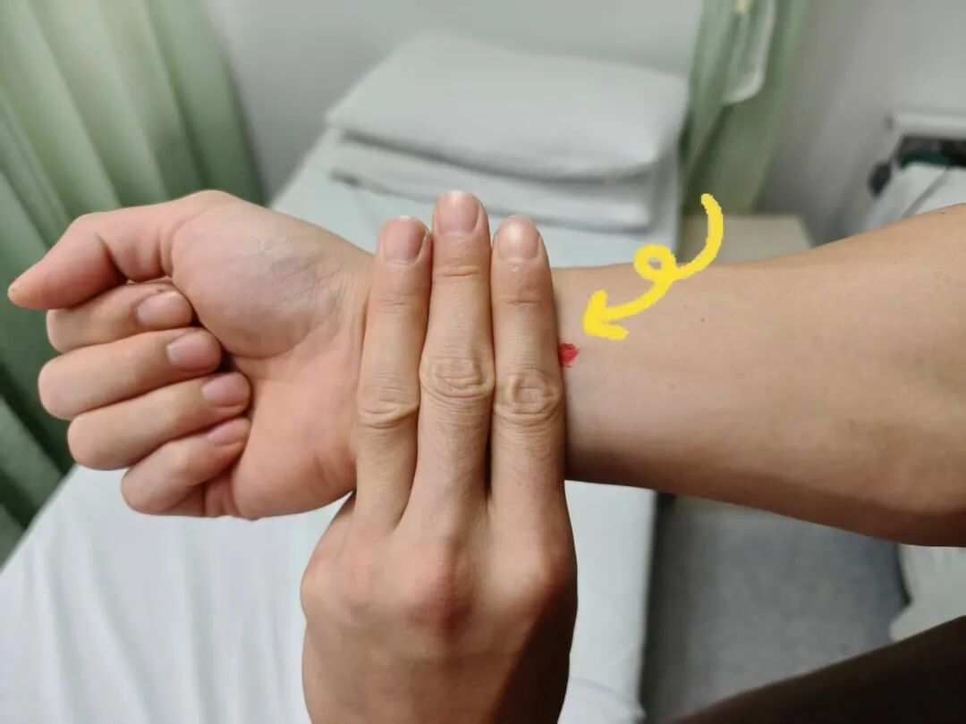 方法:感到不适时,用拇指深按对侧手臂的内关穴,持续1分钟—2分钟,力度以产生酸胀感为准。