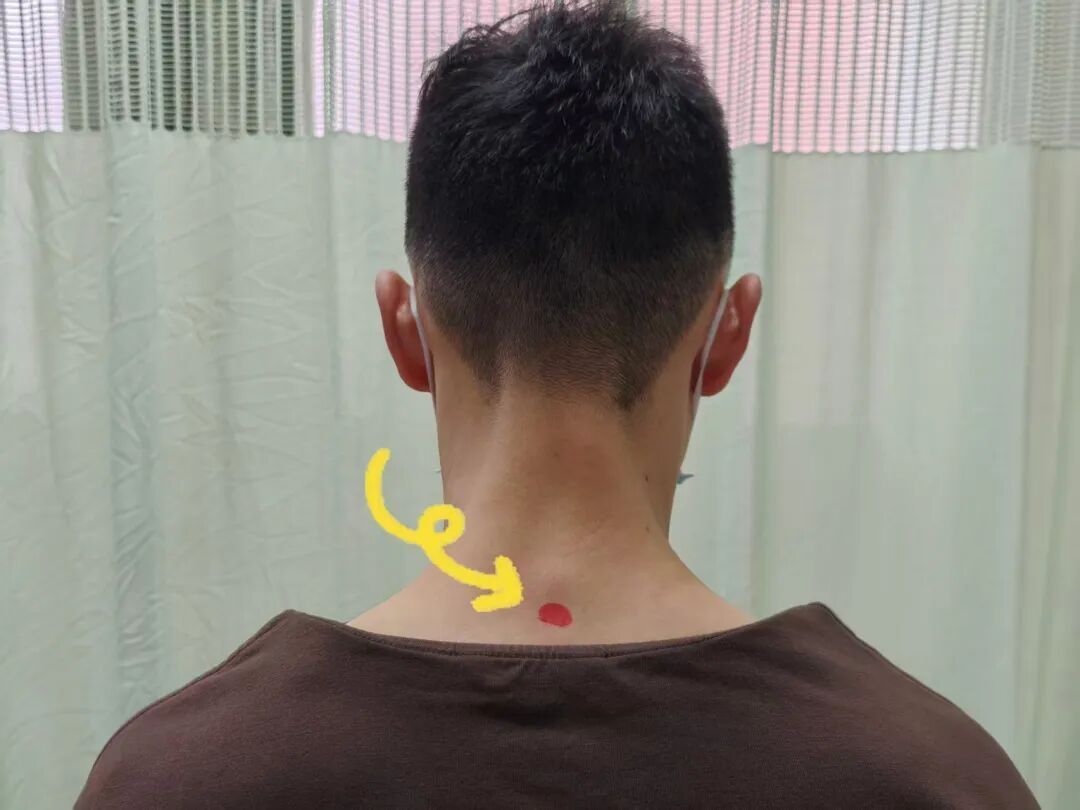 方法:用食指和中指指腹用力按揉大椎穴2分钟—3分钟,直至感到局部发热、发胀即可